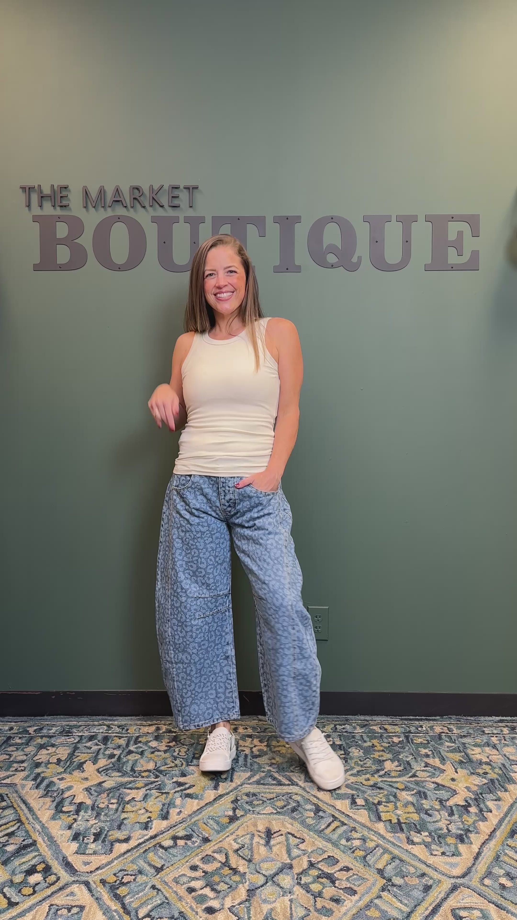 Paired in video with "Kelli" Micro-Ribbed Basic Tank Top in color Natural