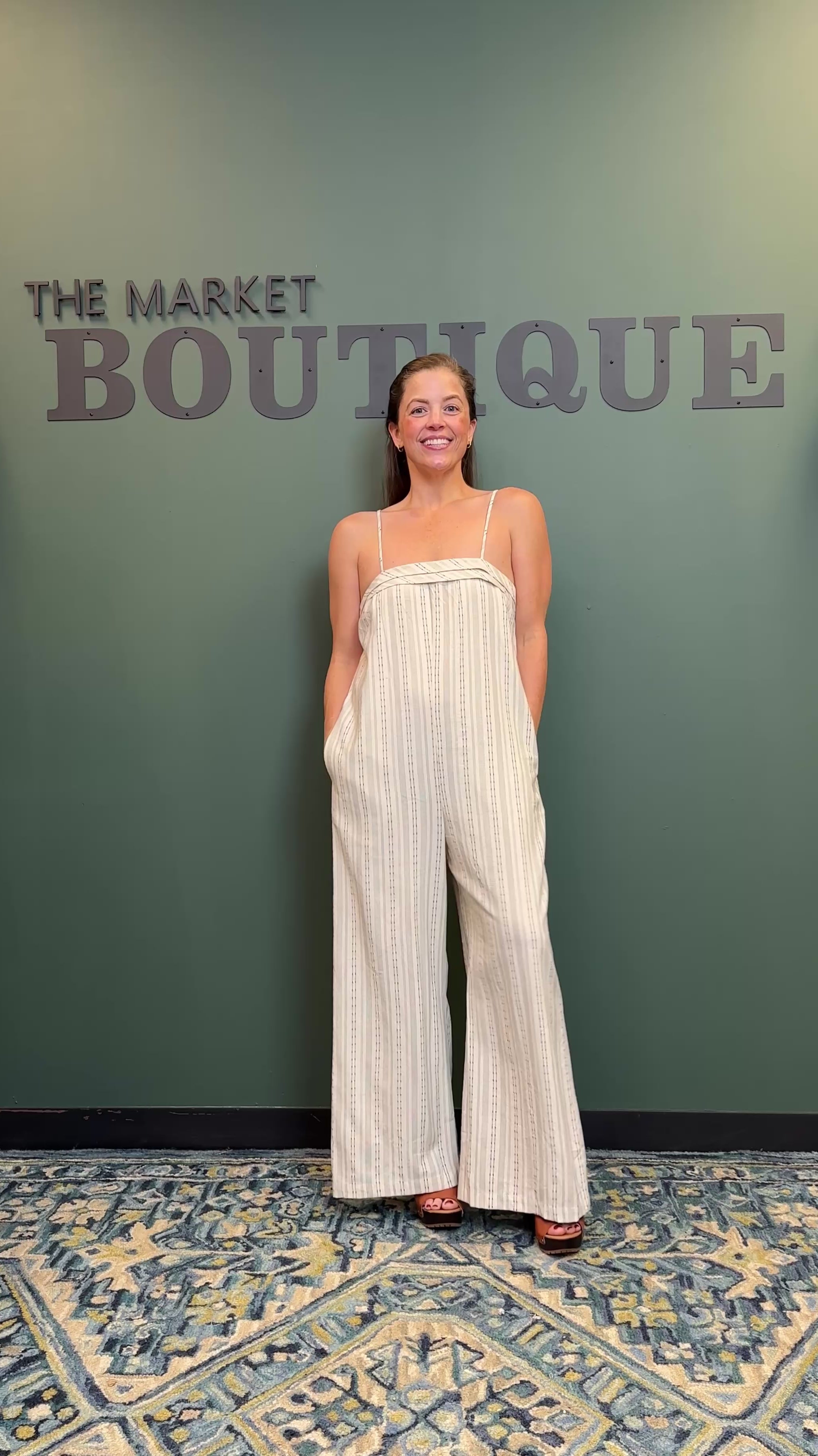 "Haley" Striped Linen Wide Leg Jumpsuit