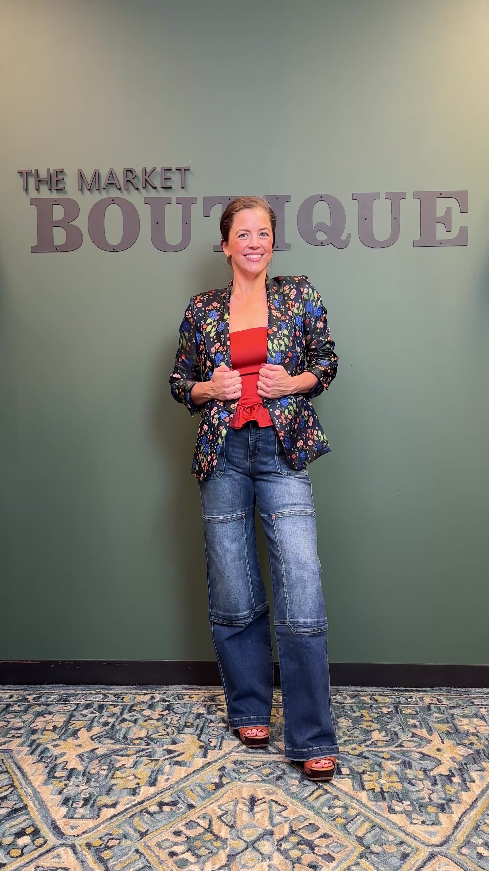 Paired in video with Artemis "Tanya" Tummy Control High Rise Relaxed Wide Leg Jean and "Selena" Shoulder Tied Ruffled Hem Top in color Rust