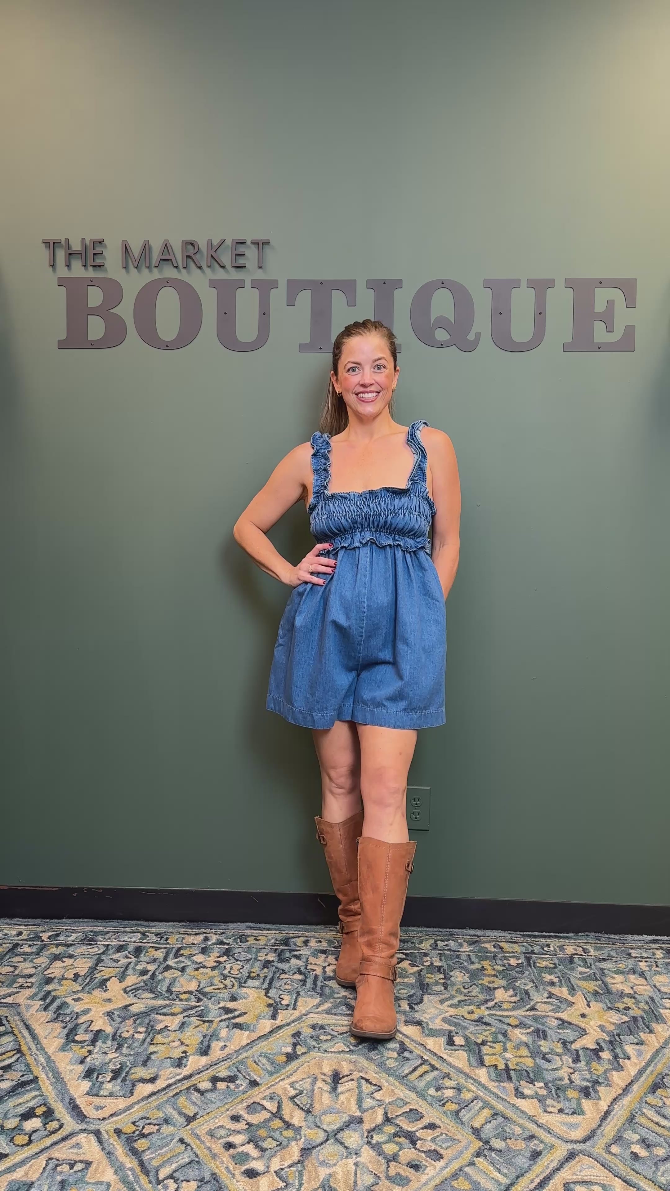 KALSEA Ruffle Detail Sleeveless Washed Denim Romper